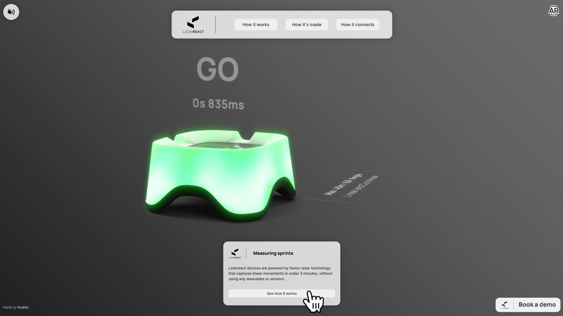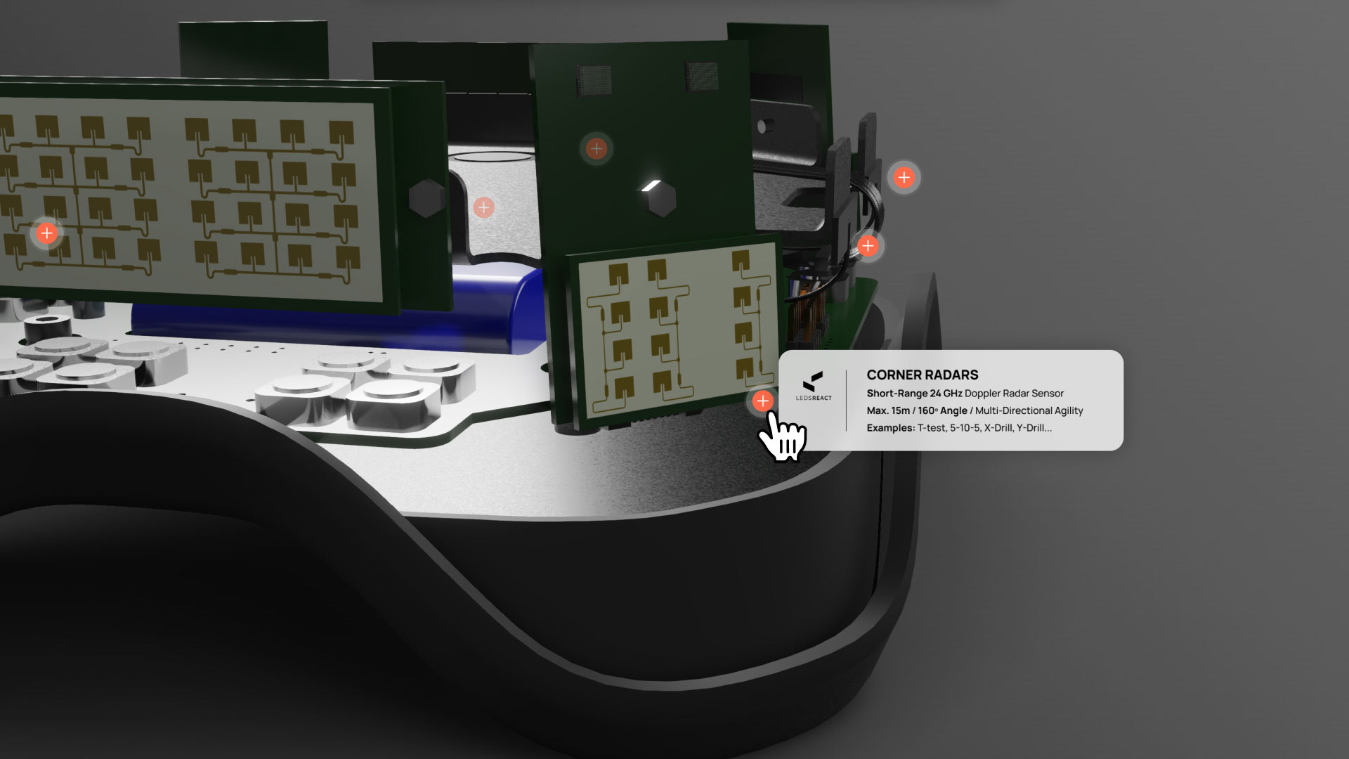 Presenting a multi-faceted sports technology device requires more than a simple product spin. For Ledsreact, I designed a structured, three-part interactive 3D narrative: 'How it works,' 'How it's made,' and 'How it connects.' This methodical UI layout guides the user from understanding the basic functionality to inspecting detailed internal components via an animated exploded view, and finally to grasping the complex cloud and API data architecture. It’s a deliberate, functional approach to product storytelling that prevents user overwhelm while delivering deep technical insights.